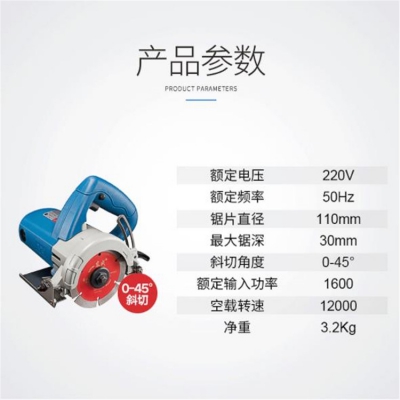 東成石材切割機采用1600W銅線電機 12000r/min高轉(zhuǎn)速 多種石材快速切割