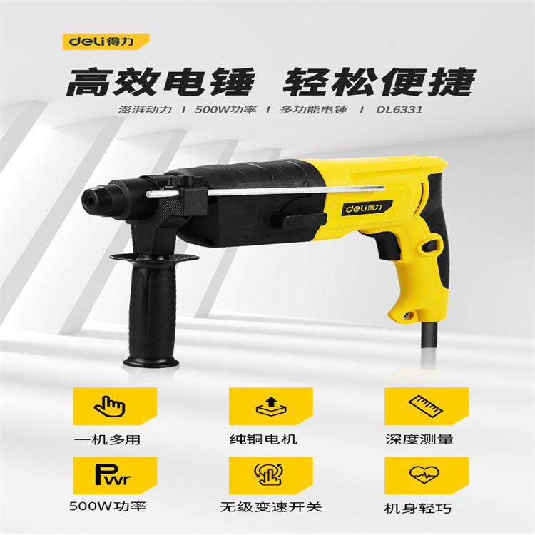 得力輕型電錘嚴(yán)選材料,精工制造,持久作業(yè),澎湃動力