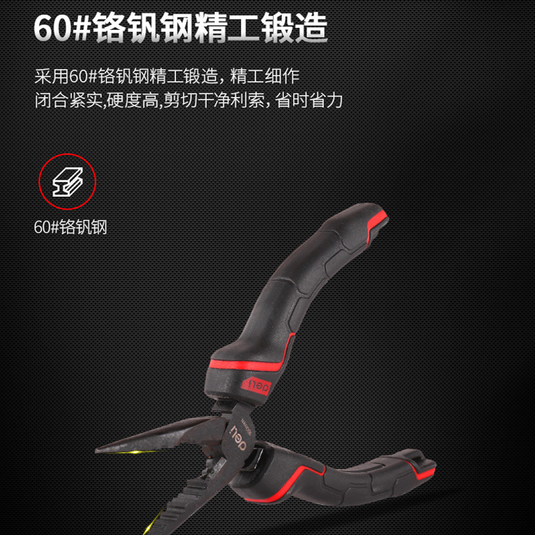 尖嘴鉗采用60#鉻釩鋼精工鍛造,精工細作。