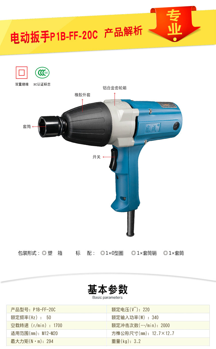 東成品牌P1B-FF-20C 電動扳手正品各部位結(jié)構(gòu)以及各項參數(shù)如圖