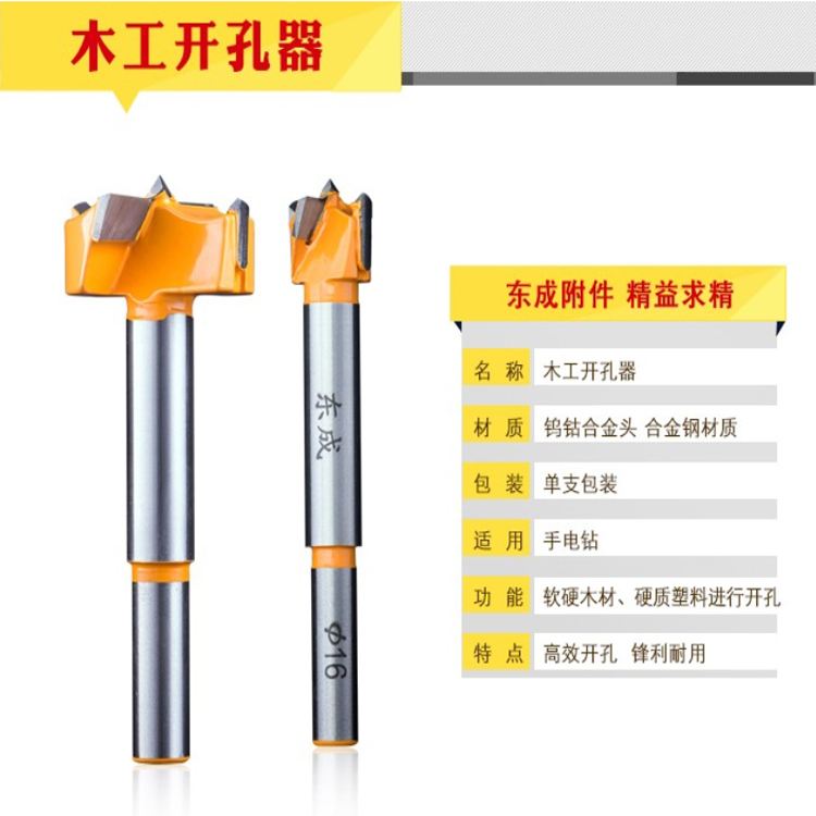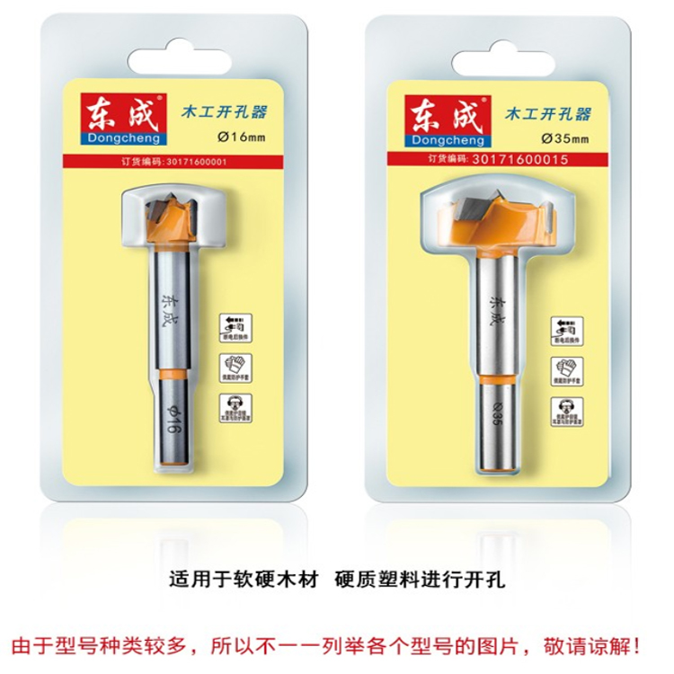 東成木工開孔器可用于安裝球形門梢抽屜梢、木材塑料制品、夾板鉸鏈合頁安裝