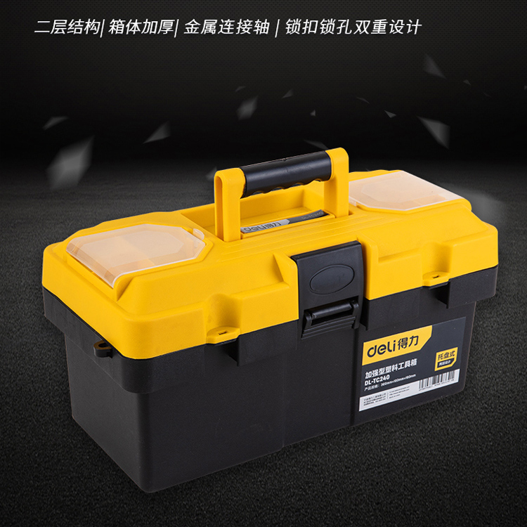 得力工具箱加強(qiáng)型多功能手提式塑料大號家用維修工具盒工具收納箱