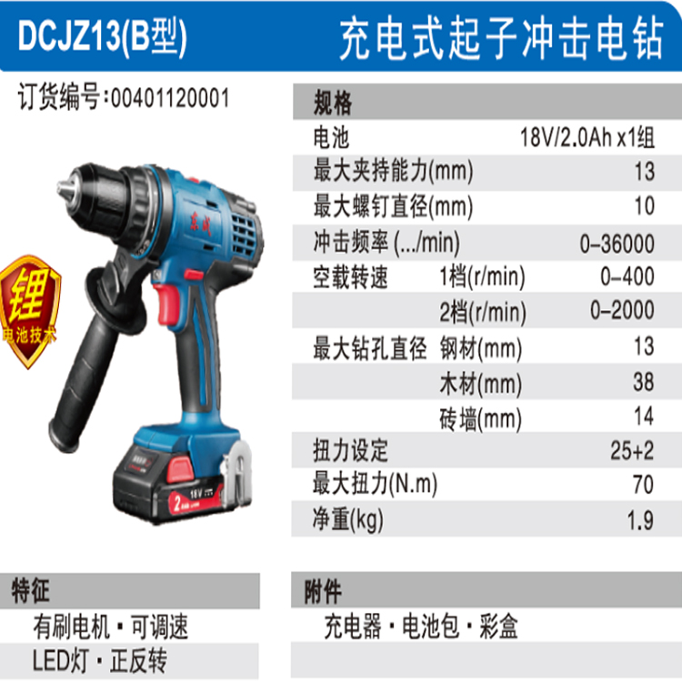 東成充電式起子沖擊電鉆DCJZ13 單一的沖擊是輕微的,