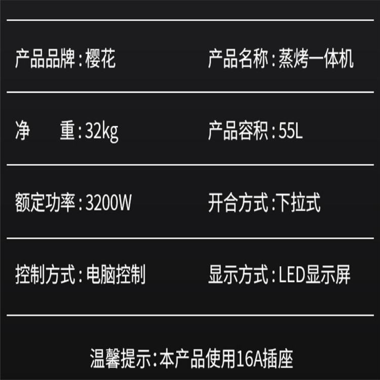 櫻花SCE-55CA01蒸烤一體機(jī)蒸烤箱嵌入式蒸烤箱大容量蒸箱烤箱三合一產(chǎn)品參數(shù)