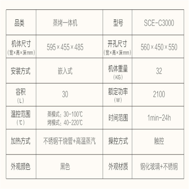 櫻花SCE-C3000蒸烤一體機蒸烤箱嵌入式蒸烤箱大容量蒸箱烤箱三合一產(chǎn)品參數(shù)