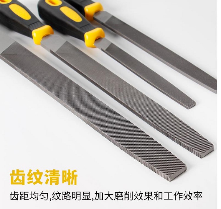 得力扁銼中齒齒距均勻,紋路明顯,加大磨削效果和工作效率。