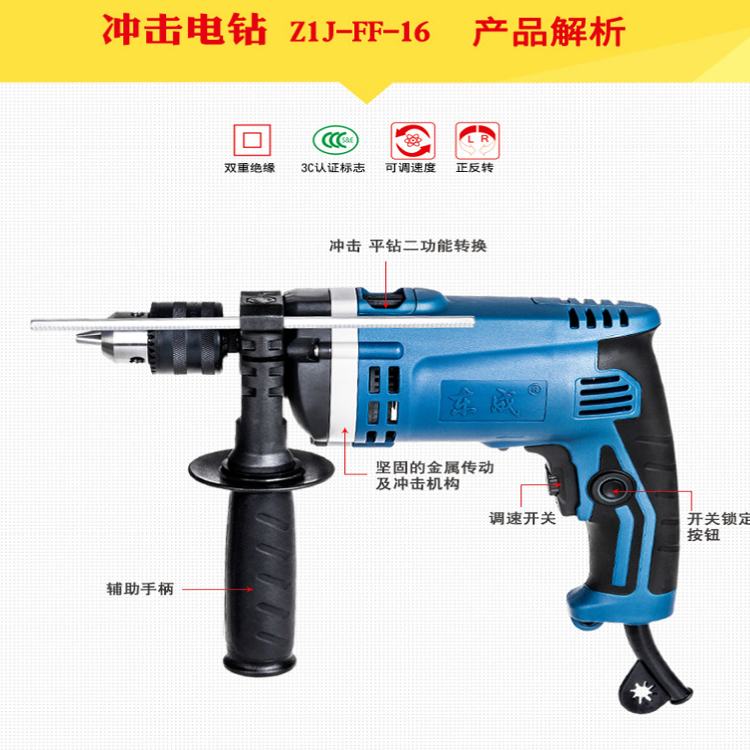 東成沖擊電鉆Z1J-FF-16適用于對(duì)混凝土地板、墻壁、磚塊,石料