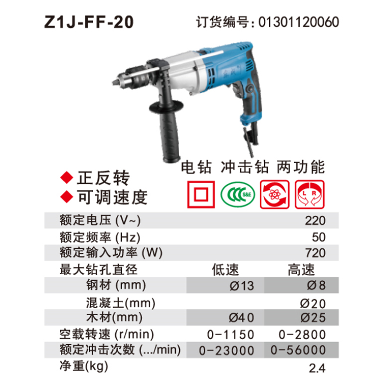 東成沖擊電鉆Z1J-FF-20適用于對混凝土地板、墻壁、磚塊,石料