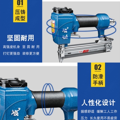 釘槍高強(qiáng)度機(jī)身、堅固耐用、打釘更強(qiáng)勁、裝修更方便