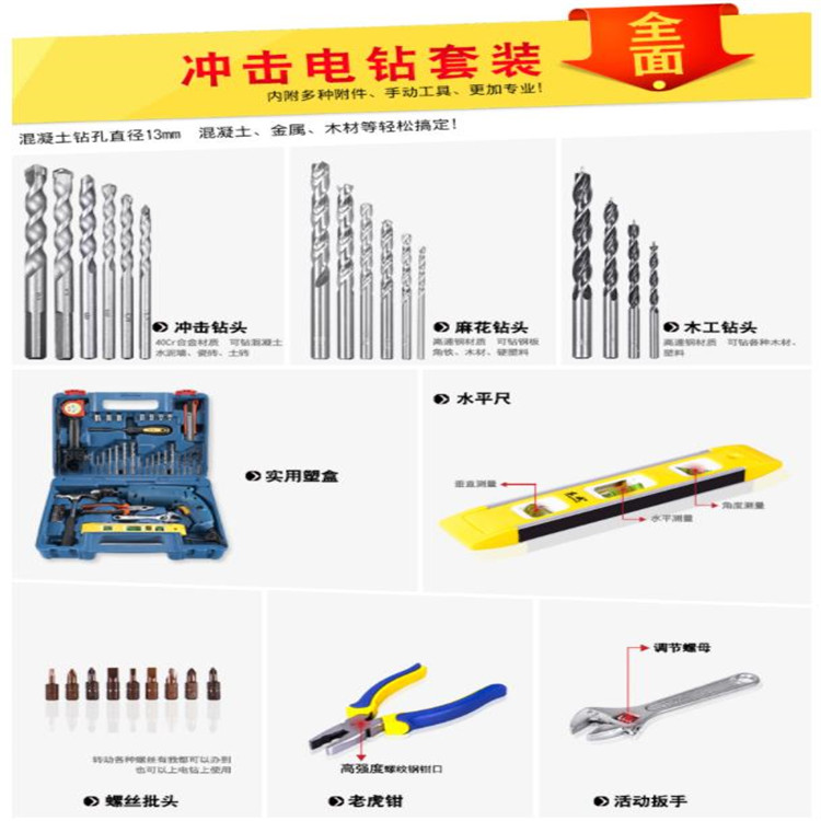 東成沖擊電鉆套裝既能用于家居裝修,又能電器維修,還能組裝家具