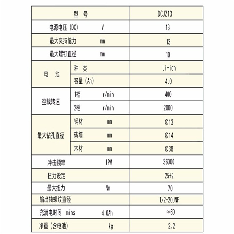 充電式?jīng)_擊電鉆起子機(jī)產(chǎn)品參數(shù)