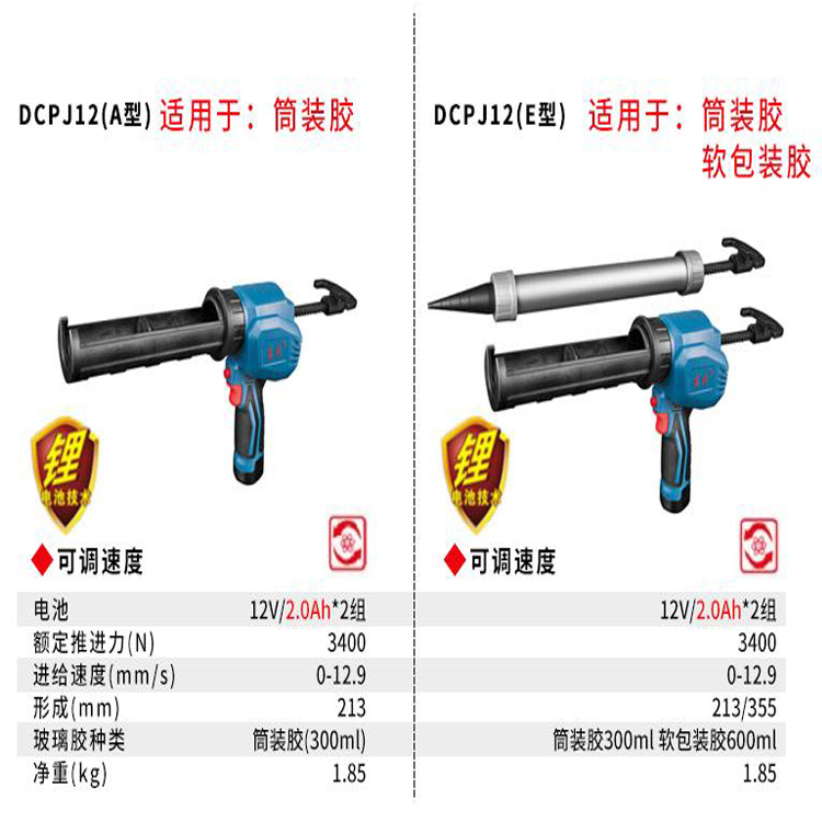 東成充電式打膠槍DCPJ12(A型)/DCPJ12(E型)參數(shù)