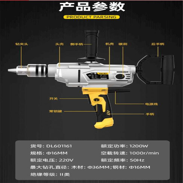 得力飛機(jī)鉆便攜式手電鉆大功率高效鉆孔水鉆機(jī)攪拌機(jī)水泥攪灰攪拌鉆