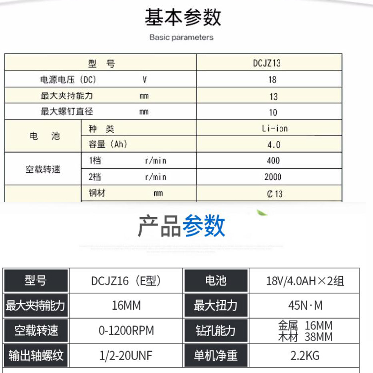 東成充電式無(wú)刷電鉆DCJZ16(E型)、DCJZ13(E型)參數(shù)展示