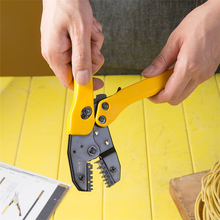 得力冷壓鉗多功能棘輪壓接鉗精密預(yù)絕緣裸端子電工夾線壓線鉗工具