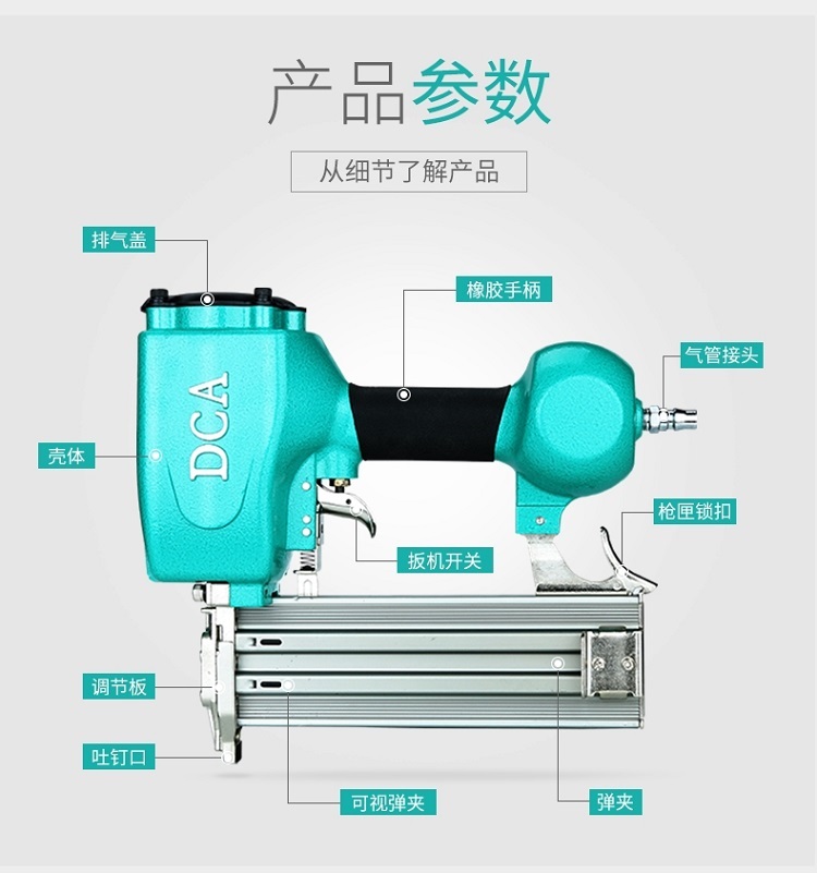 直釘槍不卡釘安全觸控開關(guān)設(shè)計,不漏氣,耐磨能有效提高工作效率