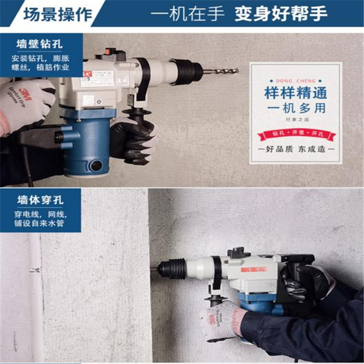 東成多功能電錘鉆孔安裝、水電開(kāi)槽全能型電動(dòng)工具