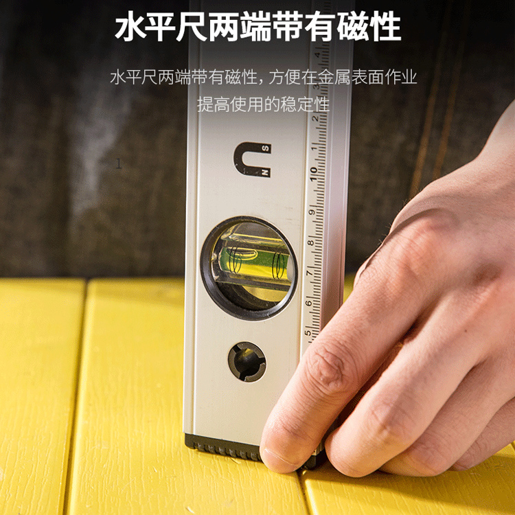 水平尺兩端帶有磁性,方便在金屬表面作業(yè),提高使用的穩(wěn)定性