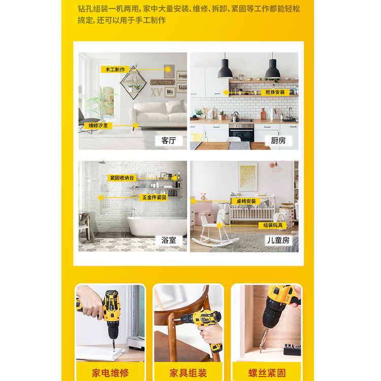 得力(deli) 10.8V無(wú)線雙鋰電電鉆鉆孔組裝一機(jī)兩用,假裝維修更方便。