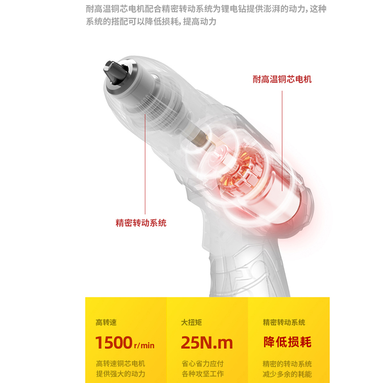 得力(deli) 10.8V無(wú)線雙鋰電電鉆強(qiáng)勁電機(jī),效率更勝一籌。