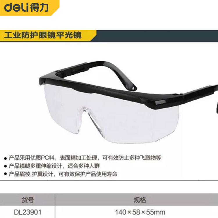 得力工具 DL23901工業(yè)防護(hù)眼鏡透明平光鏡,