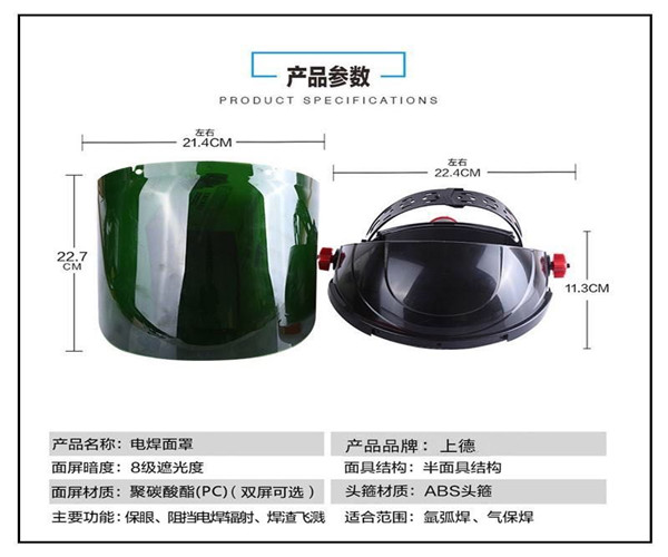 陽(yáng)明綠全屏面罩二代防護(hù)面罩選用好材質(zhì)聚酰胺制作面屏,不粘焊渣