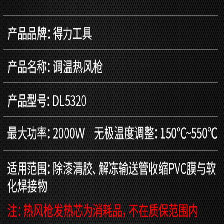 得力調(diào)溫?zé)犸L(fēng)槍DL5320熱塑收縮膜吹風(fēng)機(jī)參數(shù)