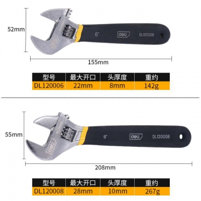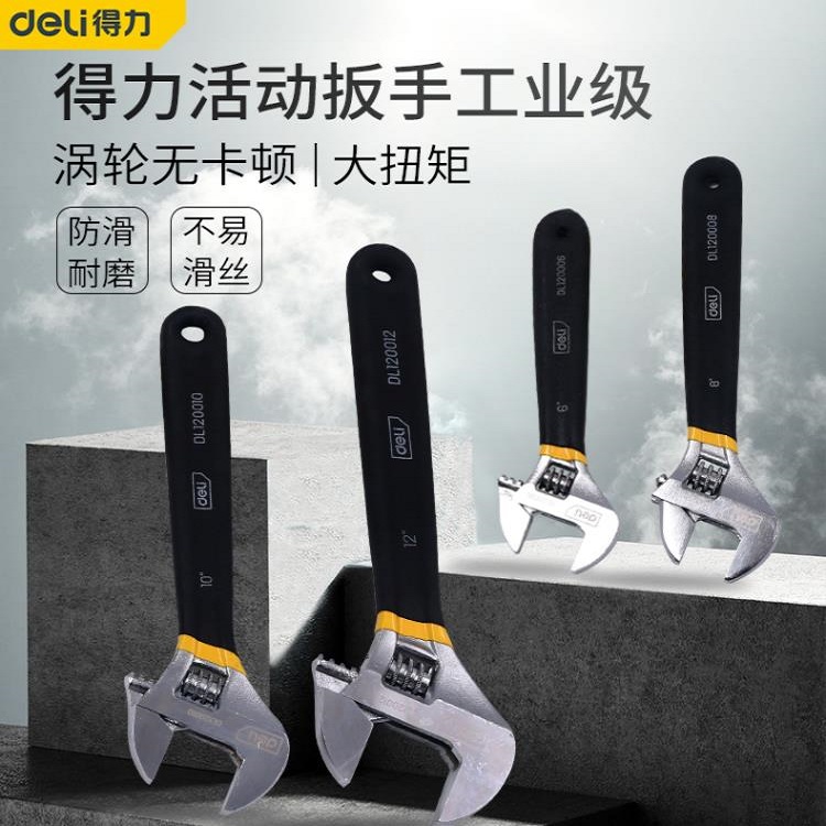 得力沾塑柄活扳手活動扳手大小號開口扳手工具多功能沾塑柄活絡活口扳子