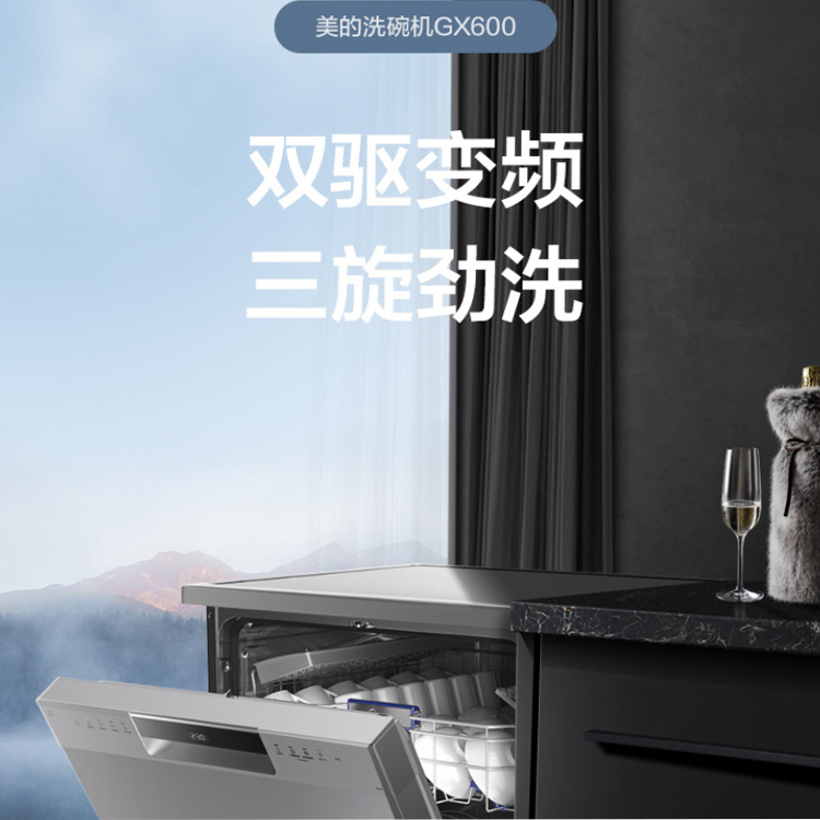美的家用智能除菌刷碗機更穩(wěn)運行,低噪音,使用感舒適。- 型號名稱洗碗機GX600