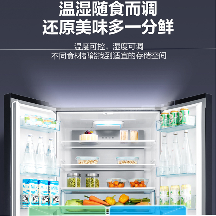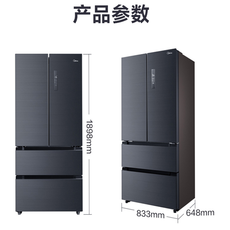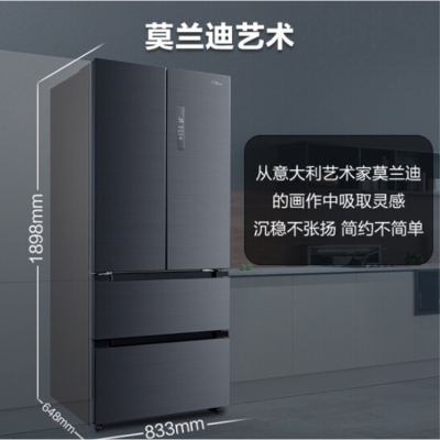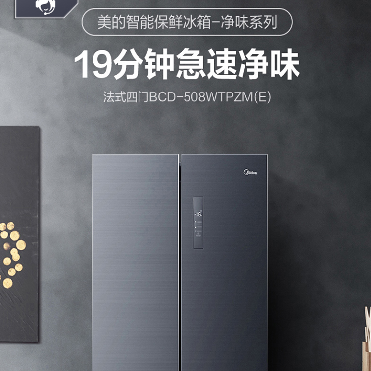 美的多門對開冰箱采用超磁電離凈味,快速分解消滅異味。