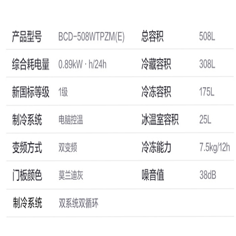 美的(Midea)508升 多門對開冰箱一級能效雙變頻智能溫濕精控家用電冰箱