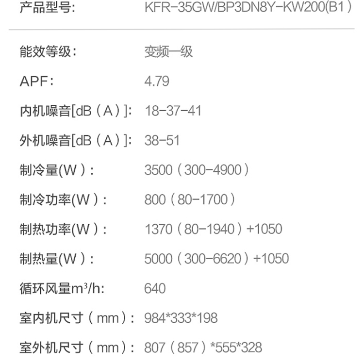 - 型號(hào)名稱空調(diào)KFR-35GW/BP3DN8Y-KW200(B1)