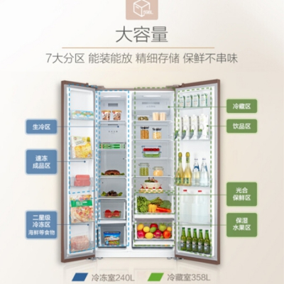 美的對(duì)開門雙門家用冰箱大容量,分區(qū)存儲(chǔ),可滿足兩周需求。