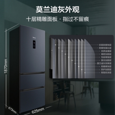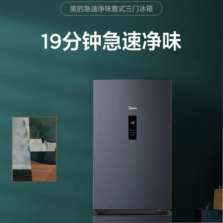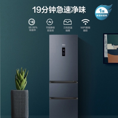 美的(Midea)325升 三門冰箱19分鐘急速凈味除菌一級(jí)能效雙變頻智能WiFi操控家用電冰箱