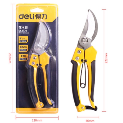 得力8寸不銹鋼彎嘴花木剪鋁合金+PVC手柄,握感舒適。