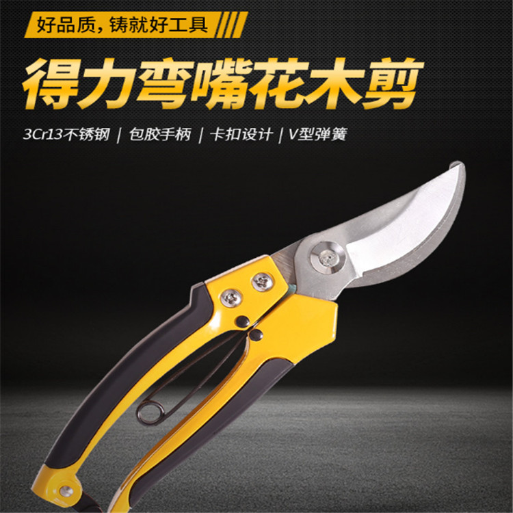 得力8寸不銹鋼彎嘴花木剪適用于修剪果枝,盆景,園林及其他剪切。