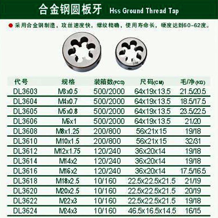 得力 手用合金鋼圓板牙管螺紋絲錐扳牙絲攻板牙,