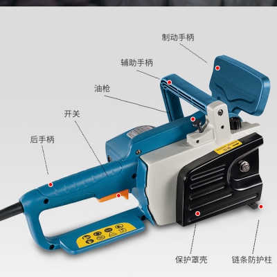 東成電鋸伐木鋸M1L-FF03-405家用小型手持電鏈鋸,反保護開關(guān),保護操作安全,按住旁邊的保護按鈕之后,再按開關(guān)進行切割操作。