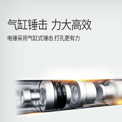 氣缸錘擊,力大高效,電錘采用氣缸式錘擊,打孔更有力。