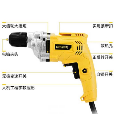 得力(deli) 電鉆家用手電鉆可調(diào)轉(zhuǎn)速手槍鉆電起子電動(dòng)螺絲刀450W DL6282