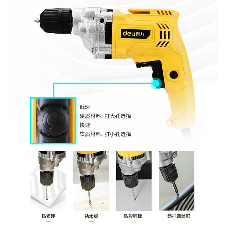 得力電鉆轉(zhuǎn)速可調(diào),一機(jī)多用,隨心操作。