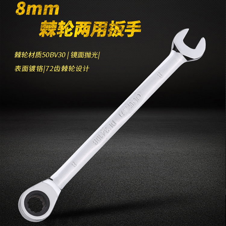 棘輪兩用扳手整體鏡面拋光表面鍍鉻強(qiáng)度高,機(jī)械性能穩(wěn)定