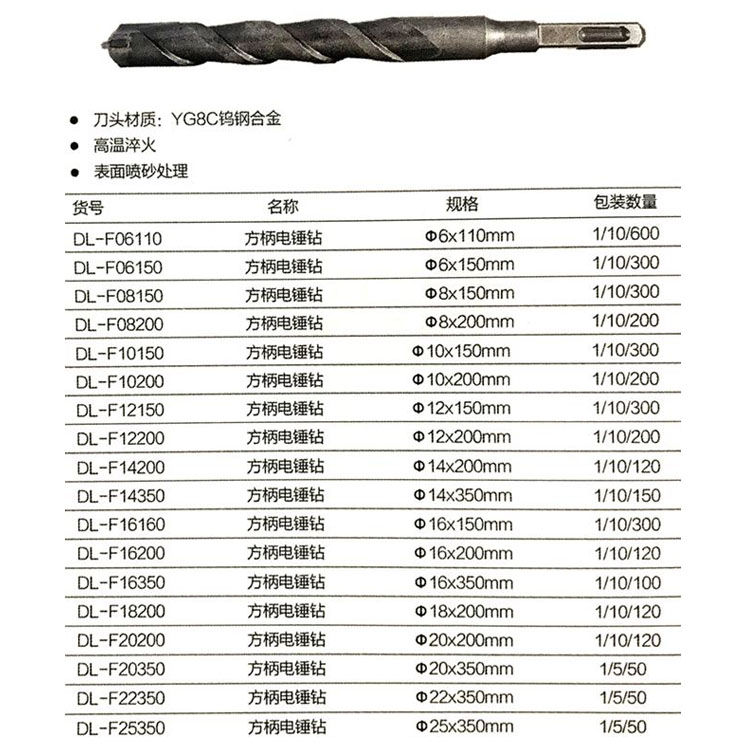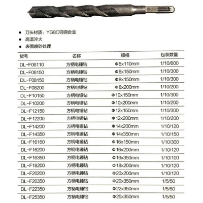 得力(deli)四坑方柄電錘鉆頭 沖擊鉆頭 混凝土建工鉆頭