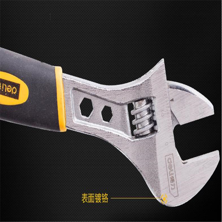 得力沾塑柄活扳,表面鍍鉻處理,使用方便