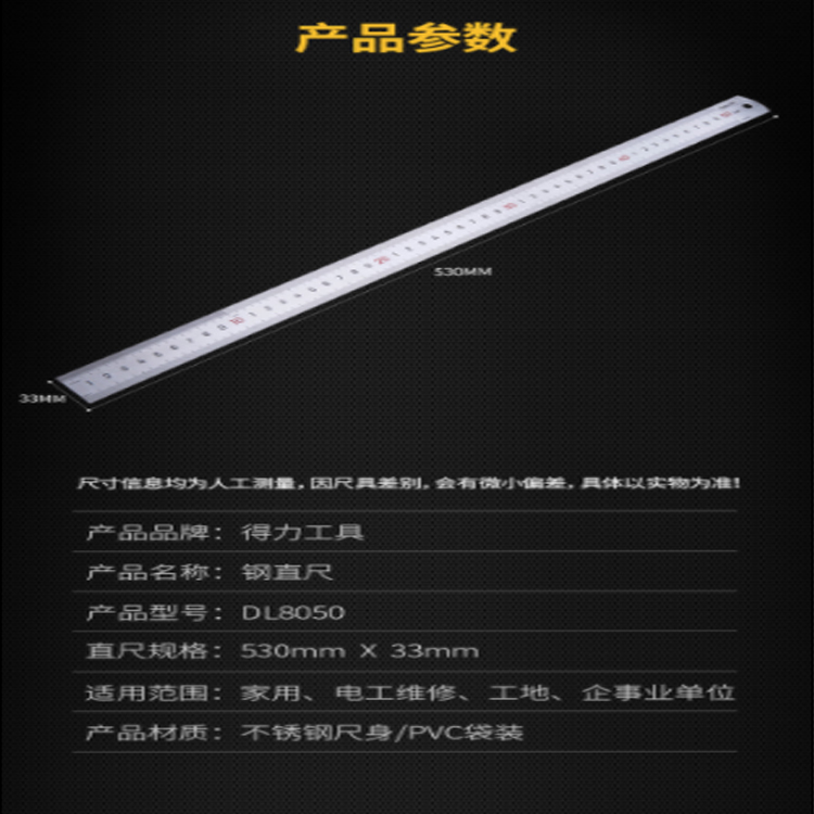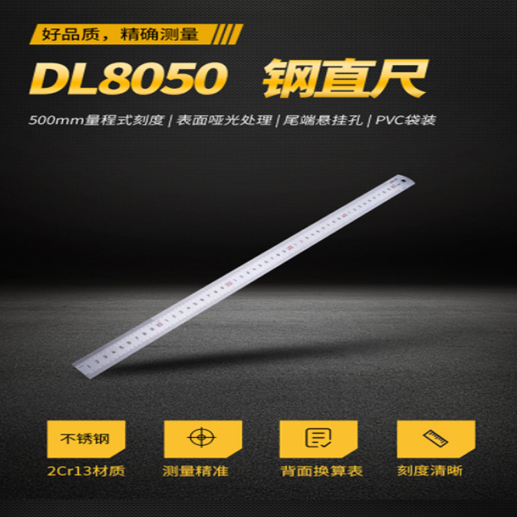 得力(deli) 不銹鋼直尺刻度尺公制刻度繪圖鋼尺50cm DL8050