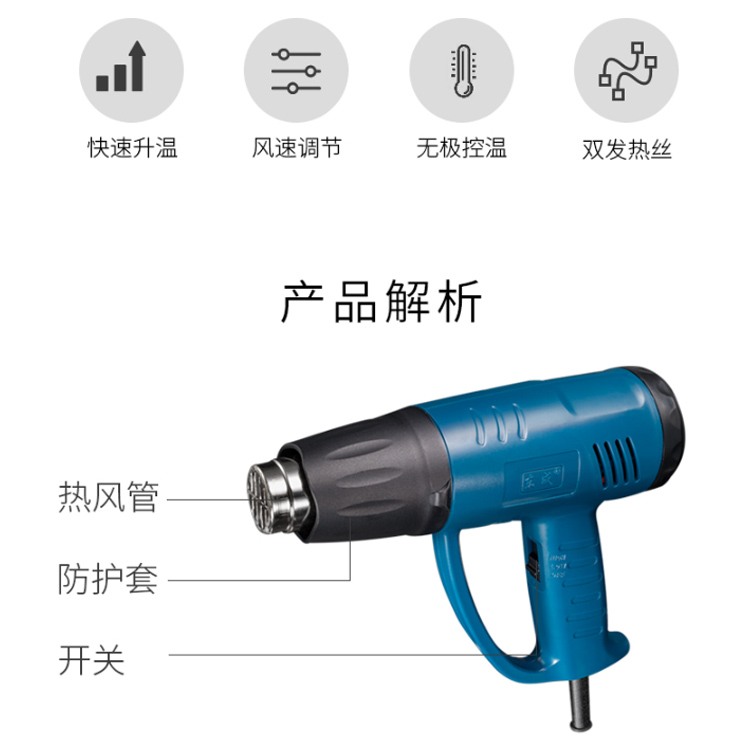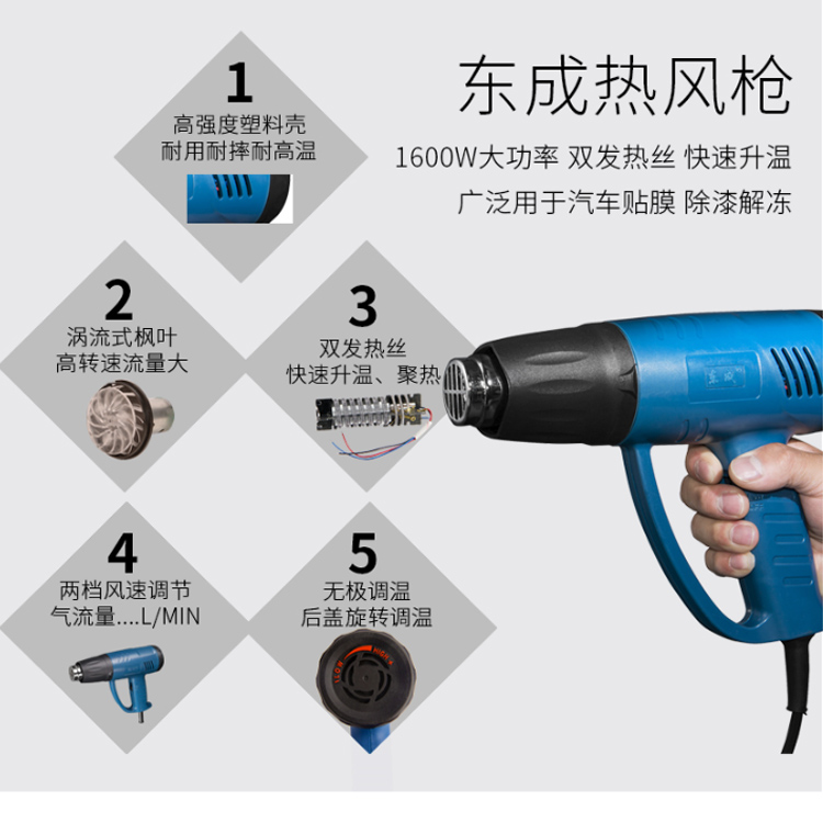 東成熱風槍DQB02-1600可調溫電烤槍汽車貼膜工具烤槍烘槍