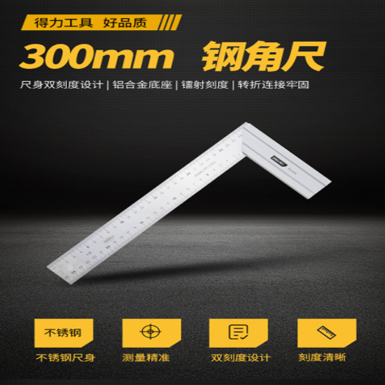 得力(deli) 鋼角尺直角尺雙刻度角尺90度尺拐尺L型木工尺寬座方直尺300mm