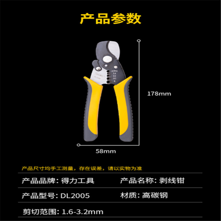 得力電纜剝線鉗1.6-3.2mmDL2005剪線鉗參數(shù)