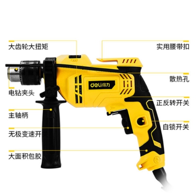 得力(deli) 13毫米沖擊鉆手電鉆家裝維修,電氣工業(yè),應(yīng)急維修,攜帶方便。