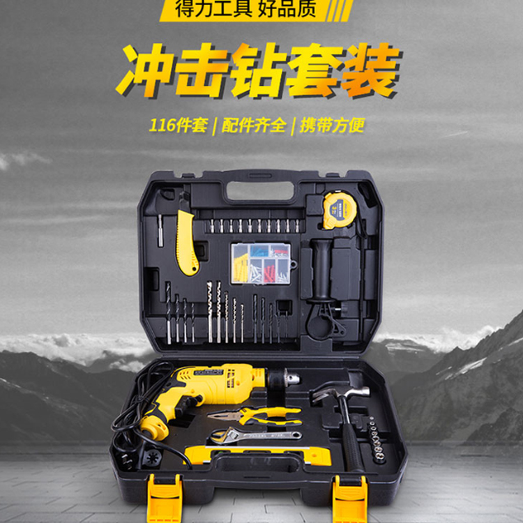 得力(deli) 13毫米沖擊鉆手電鉆百件套裝,全副武裝,功能齊全,維修方便。